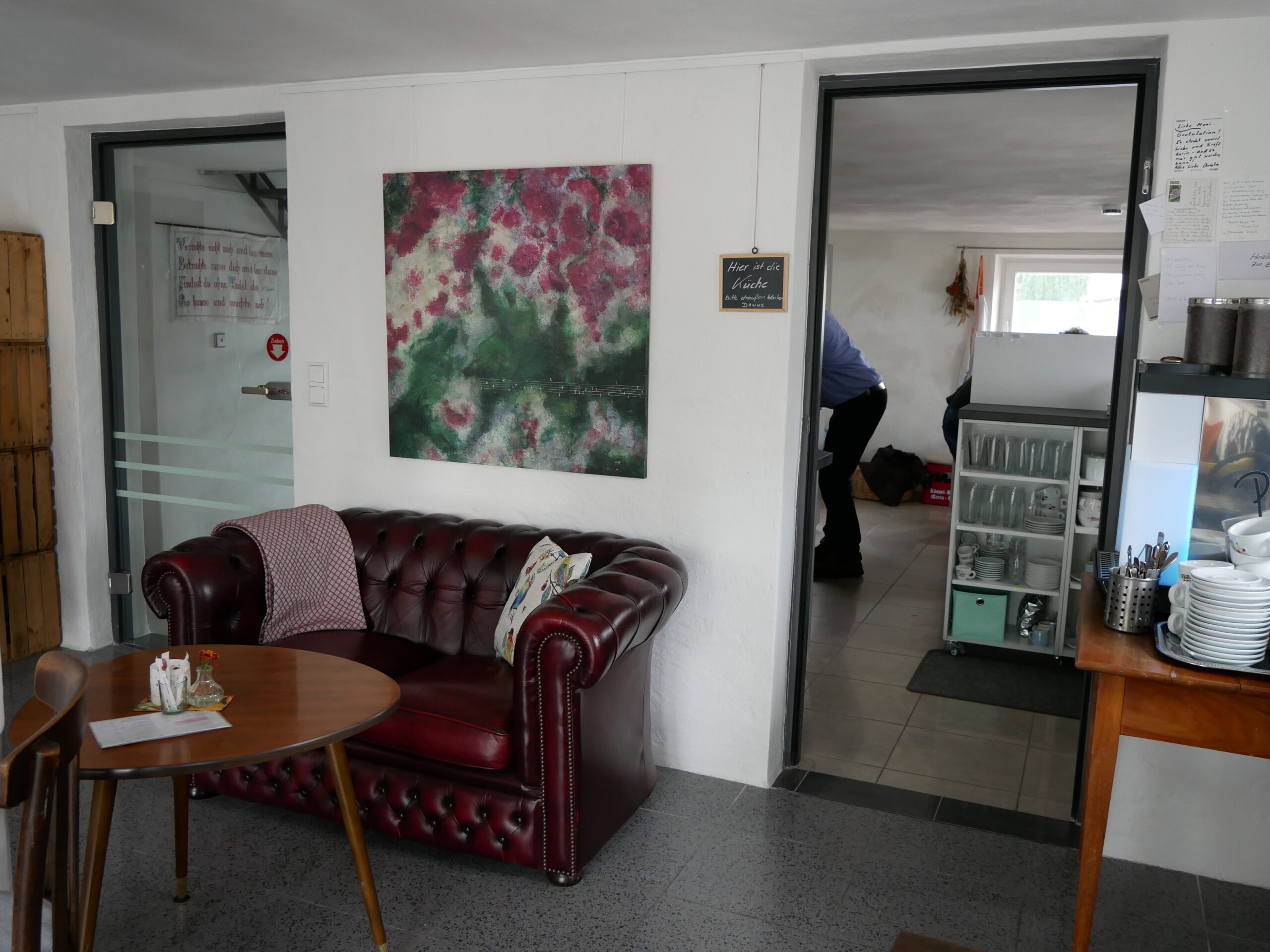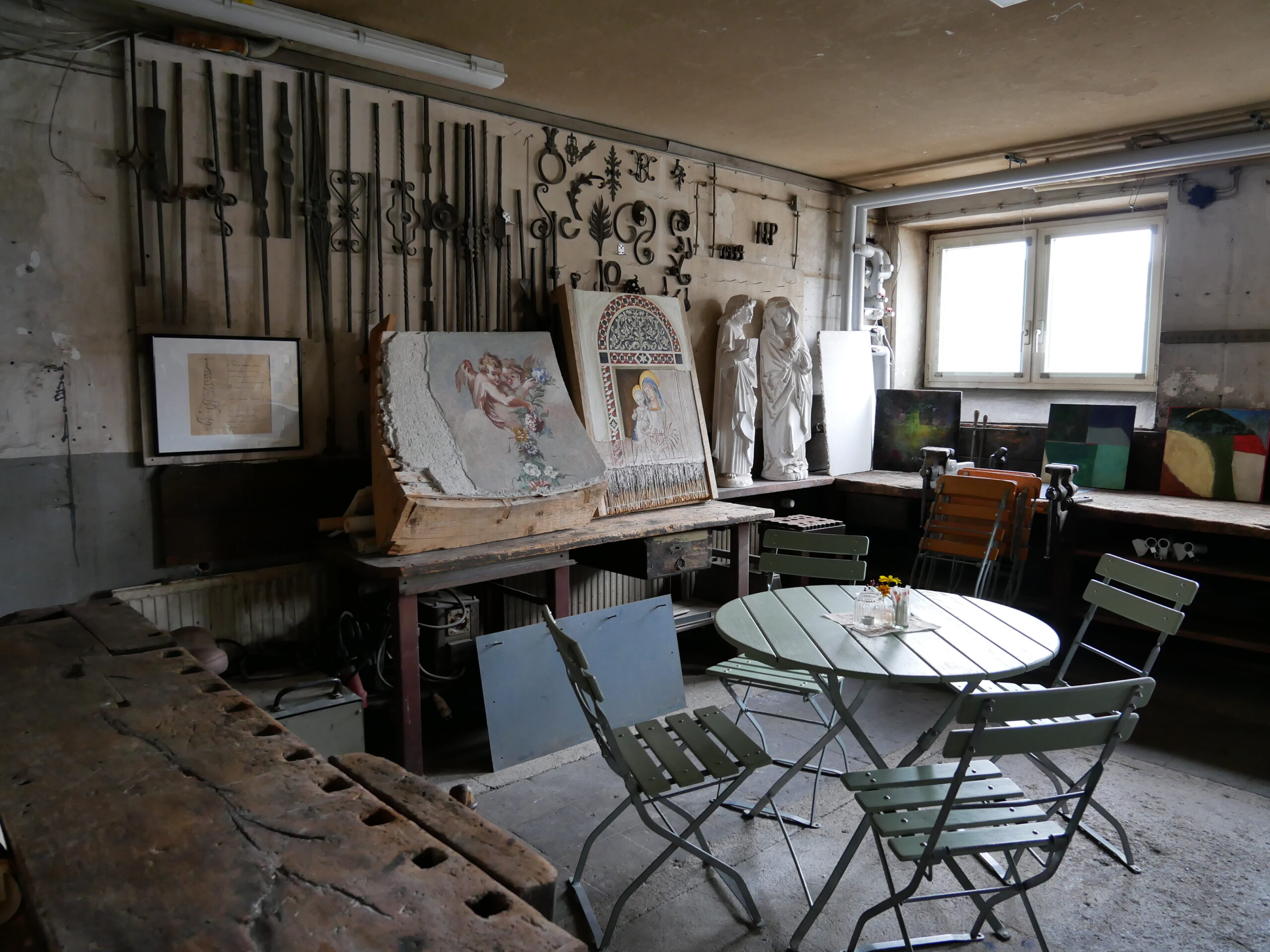 In der ehemaligen Schmiede wurde ein gemütliches Café geschaffen sowie eine Kreativwerksatt mit Schmiede-Ambiente direkt anschließend an das Café. Über dem Café befinden sich Ausstellungsräume für Exponate des Eigentümers. Und darüber wurde die ehemalige Wohnung des Schmieds auf aktuellen Stand gebracht und gleichzeitig das Dachgeschoss zum Wohnzimmer ausgebaut.